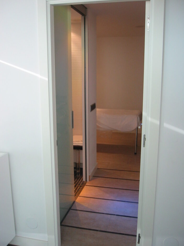 Ubicado en una zona residencial tranquila, rodeada de jardines, el centro se beneficia de dos fachadas que aportan un valor añadido al proyecto. La fachada principal, de acceso desde una zona porticada del edificio, ofrece una entrada elegante y acogedora, mientras que la fachada trasera, orientada hacia los jardines, proporciona un entorno sereno y privilegiado. Este contexto único contribuye a crear una atmósfera relajante, ideal para disfrutar de un espacio de bienestar en total calma.