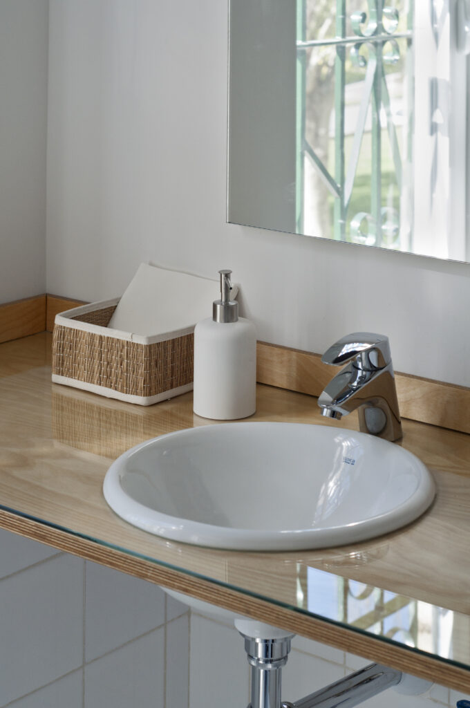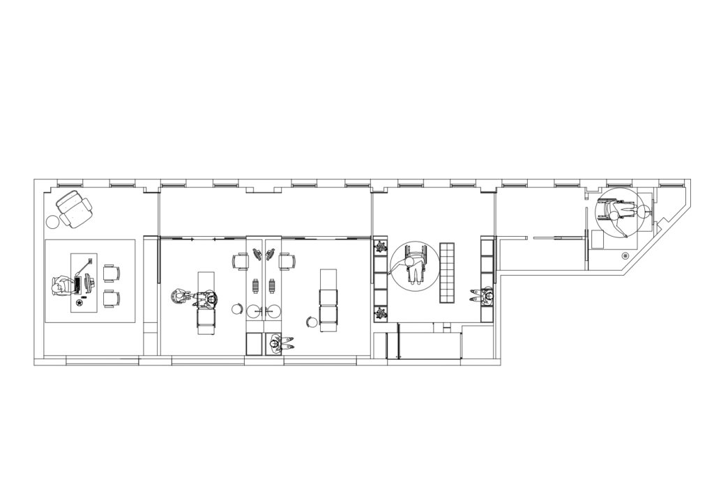 La configuración regular del local y su doble fachada permitieron desarrollar una distribución ordenada y fluida. Desde la entrada, la luz se filtra de manera natural hasta los espacios interiores, generando una sensación de amplitud y bienestar.